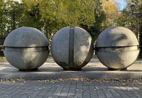 - На фото — памятник «Три шурупа», который стал своеобразным символом столицы региона. Также в городе есть памятники аленькому цветочку, золотой рыбке, геодезистам и даже клещу. На родном языке название столицы очень похоже на «три шурупа». Что это за город?
