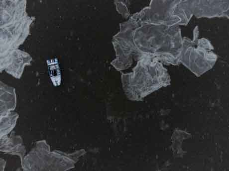 4) Козодой - Перед вами фото одной из первых стадий ледостава, которую иногда можно наблюдать на реках и морях России, например, на Неве или Белом море. Эскимосы называют такой вид льда «ныну», а поморы — «ночемержа». За схожесть по виду с одним калорийным продуктом в науке закрепилось такое название.