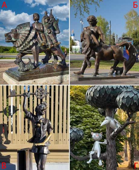 4) Хрома - Иногда памятники героям мультфильмов и сказок ставят по зову сердца. Например, «Сосиска дружбы», посвященная котенку по имени Гав в Новокузнецке. Достаточно часто герои связаны с городом или местностью, где установлен монумент. Алексей Толстой родился и прожил детские годы недалеко от Самары, Петр Ершов — рядом с Тобольском, Александр Волков работал в Томске, а в Воронеже действительно есть улица Лизюкова.