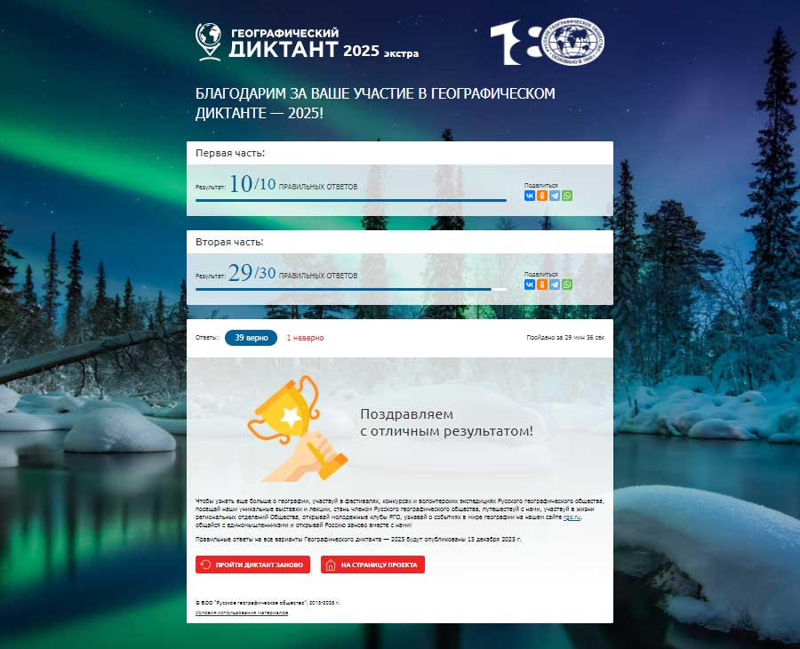 Правильные ответы на все варианты Географического диктанта — 2025