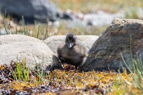 Эта северная птичка семейства утиных известна своим легким эластичным пухом, которым утепляют одежду полярников, альпинистов и космонавтов. Промысел по добыче пуха привел к серьезному сокращению популяции. В 1932 году для охраны этой птицы был создан Кандалакшский заповедник. Известная полярница Нина Демме защитила кандидатскую диссертацию о гнездовых поселениях этой птички. Выберите ее из списка.